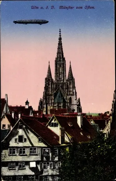 Ansichtskarte, Postkarte, Dom, Kathedrale, Münster, Luftschiff, Zeppelin