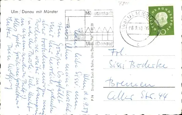 Ak Ulm an der Donau, Panorama, Münster