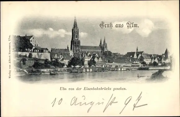 Ak Ulm an der Donau, Panorama von der Eisenbahnbrücke
