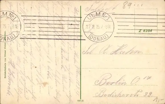 Zustand, siehe Scan, gelaufen, 1915 - ca 14 cm X 9 cm