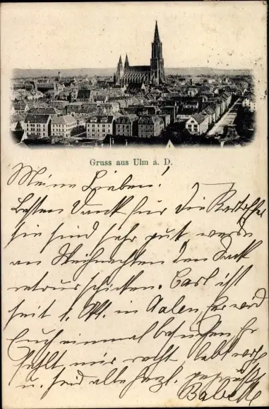 Ak Ulm an der Donau, Totalansicht der Ortschaft, Münster