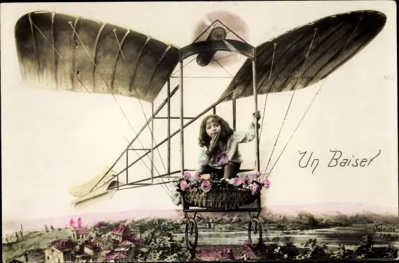 Ak Un Baiser, Portrait von einem Kind in einem Flugzeug, Fotomontage