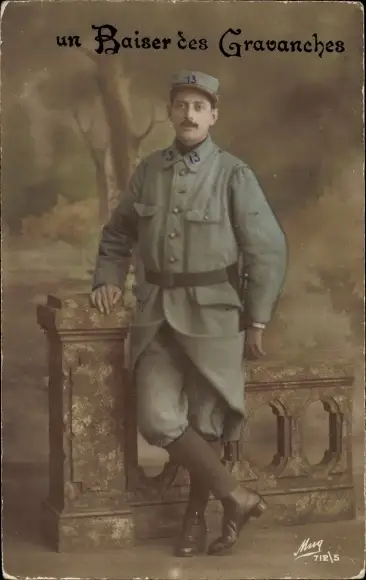 Ak Un Baiser des Gravanches, französischer Soldat in Uniform, Regiment 13