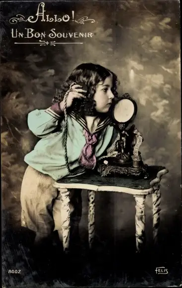 Ak Un Bon Souvenir, Kind beim Telefonieren, Telefon