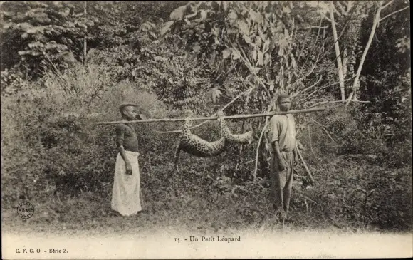 Ak Un Petit Leopard, afrikanische Jäger mit ihrer Beute