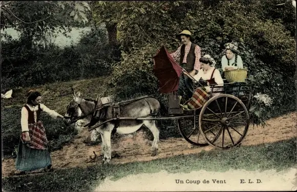 Ak Un coup de vent, Franzosen in einem Eselkarren