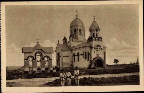 Ak Unbekannte Deutsche Kolonie, Mission, Kirche, Junge Einheimische
