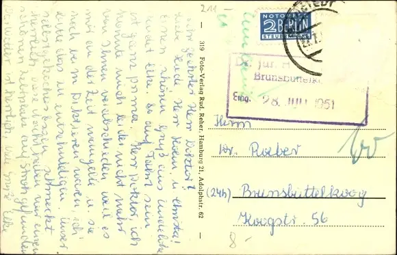 Zustand, siehe Scan, gelaufen, 1951 - ca 14 cm X 9 cm