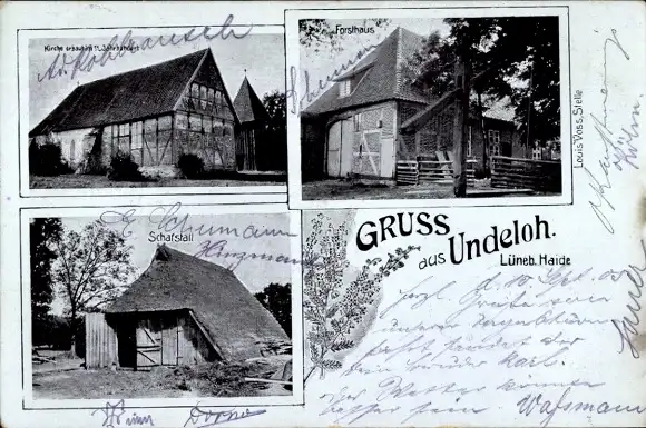 Ak Undeloh in der Lüneburger Heide, Kirche, Forsthaus, Schafstall