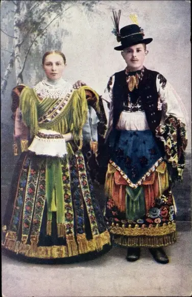 Ak Ungarn, Mann und Frau in ungarischen Volkstrachten