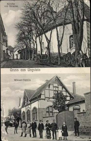 Ak Ungstein Bad Dürkheim am Pfälzerwald, Kirche mit Straße, Winzerverein