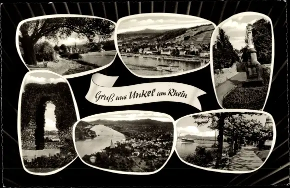 Ak Unkel am Rhein, Flusspartie, Promenade, Säule, Totalansicht
