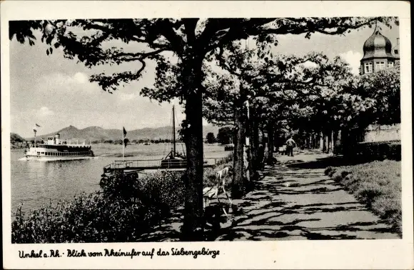 Ak Unkel am Rhein, Rheinufer, Dampfschiff