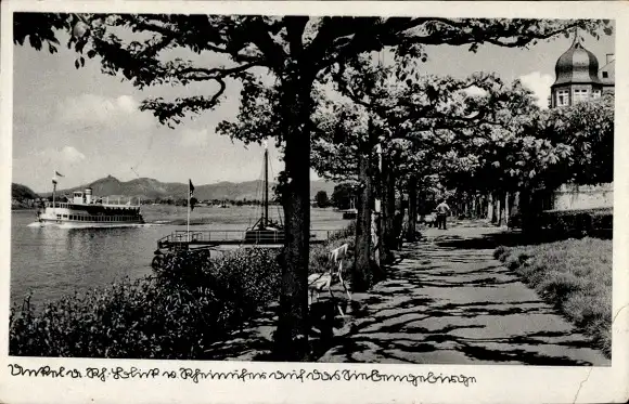 Ak Unkel am Rhein, Rheinufer, Dampfschiff
