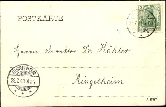 Zustand, siehe Scan, gelaufen, 1903 - ca 14 cm X 9 cm