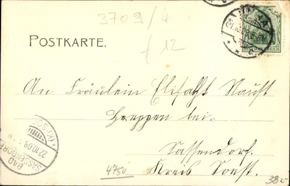 Zustand, siehe Scan, gelaufen, 1908 - ca 14 cm X 9 cm