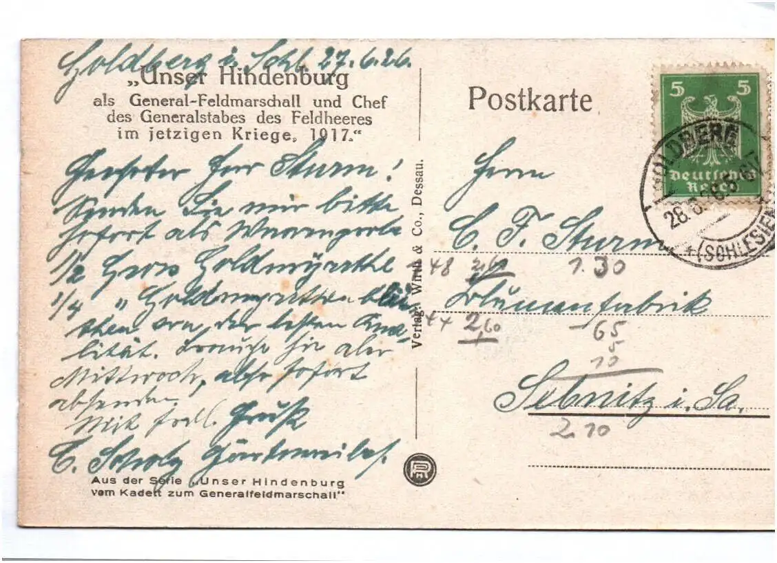 Ak Unser Hindenburg General Feldmarschall Chef Generalstabes 1926