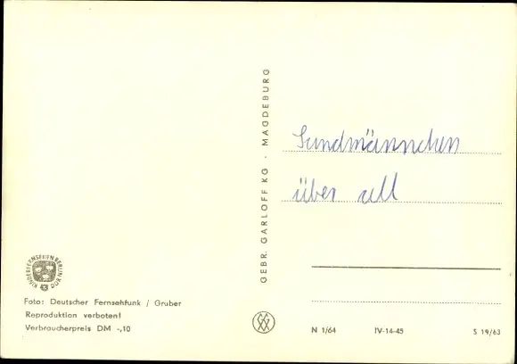 Ak Unser Sandmännchen, Sandmann, DDR Deutscher Fernsehfunk, S 19 63