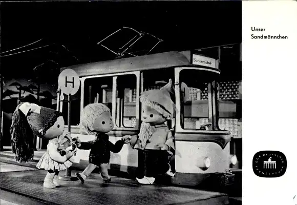 Ak Unser Sandmännchen, Sandmann, DDR Deutscher Fernsehfunk, Straßenbahn