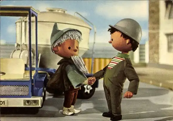 Ak Unser Sandmännchen, Sandmann, DDR Kinderfernsehen, Betonmischer