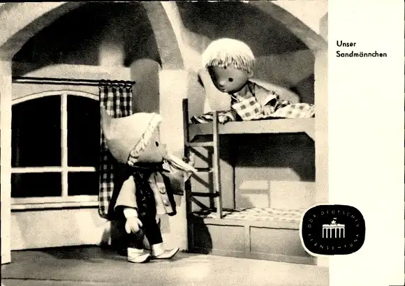 Ak Unser Sandmännchen, Sandmann, DDR Kinderfernsehen, Kind im Hochbett, S 42/64