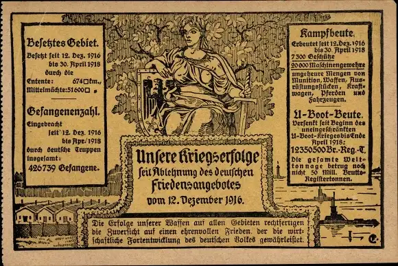 Ak Unsere Kriegserfolge seit Ablehnung des deutschen Friedensangebotes 1916