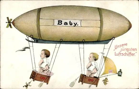 Ak Unsere jüngsten Luftschiffer, Pinkelnde Jungen, Zeppelinfahrt