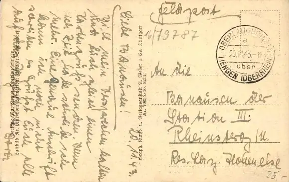 Zustand, siehe Scan, gelaufen, 1943 - ca 14 cm X 9 cm