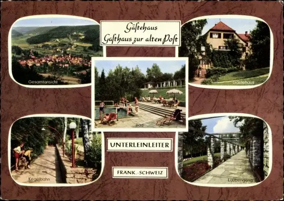 Ak Unterleinleiter in der fränkischen Schweiz, Gasthaus zur alten Post, Kegelbahn, Gesamtansicht