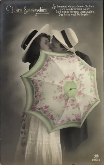 Ak Unterm Sonnenschirm, küssendes Liebespaar