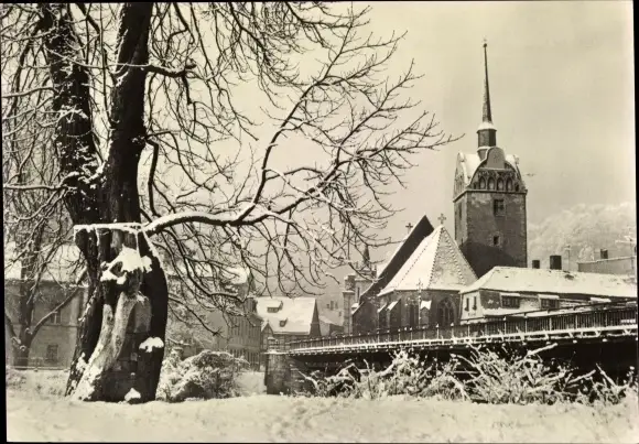 Ansichtskarte, Postkarte, Brücke, Brücken, Kirche, Stadtkirche, Gotteshaus