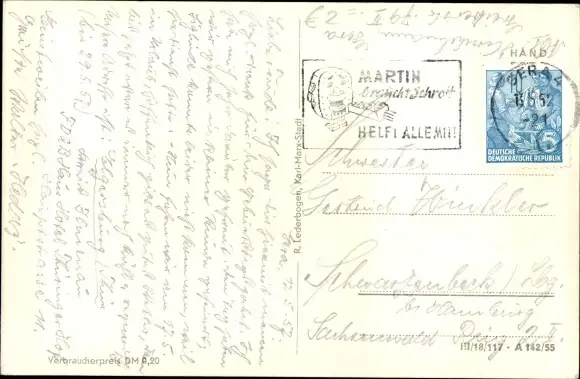 Zustand, siehe Scan, gelaufen, 1952 - ca 14 cm X 9 cm