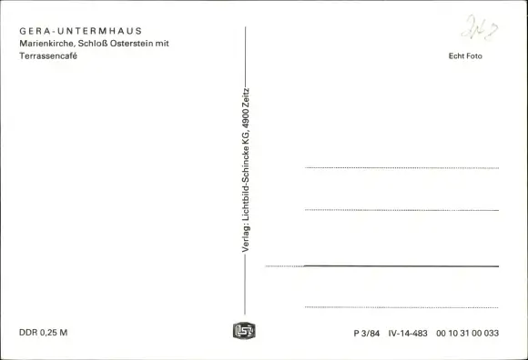 Ak Untermhaus Gera in Thüringen, Marienkirche, Schloss Osterstein, Terrassencafe