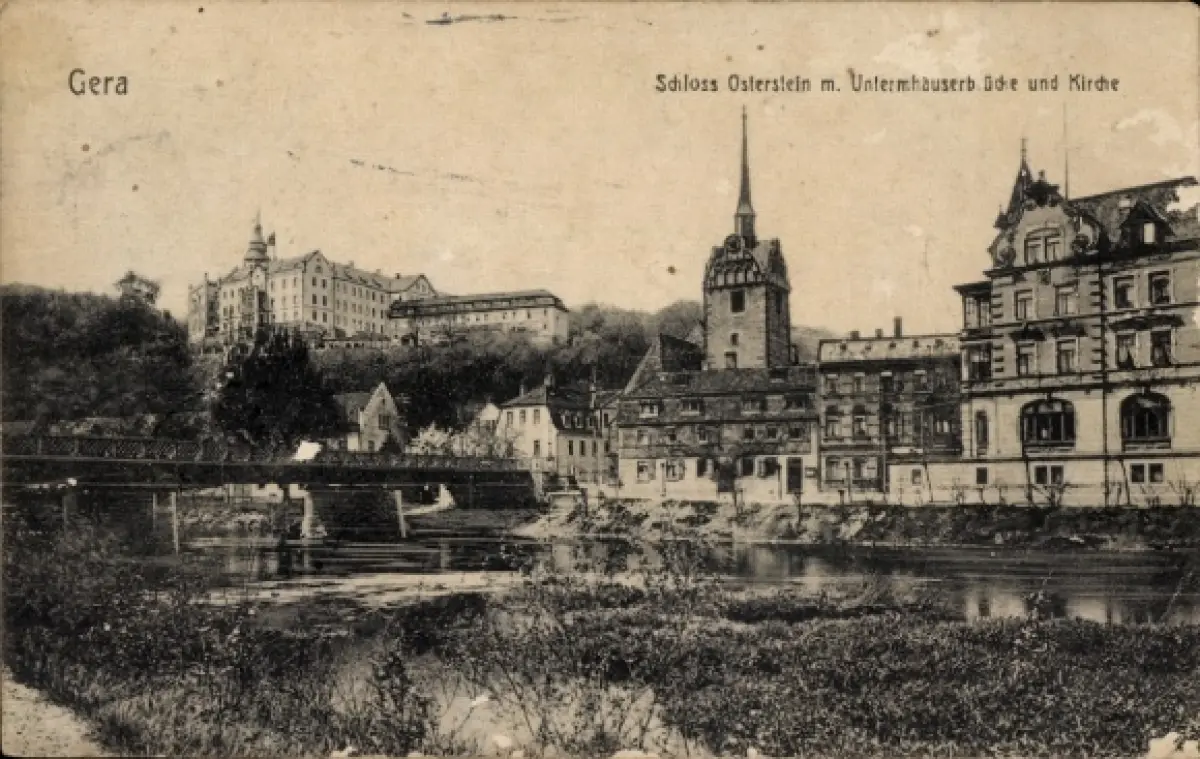 Ak Untermhaus Gera in Thüringen, Schloss Osterstein, Untermhauser Brücke, Kirche