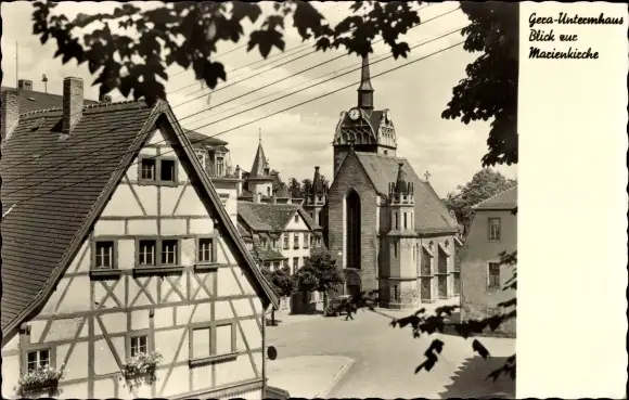 Ak Untermhaus Gera in Thüringen, Straßenpartie mit Blick auf die Marienkirche