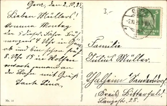 Zustand, siehe Scan, gelaufen, 1925 - ca 14 cm X 9 cm