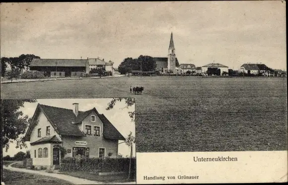 Ak Unterneukirchen in Oberbayern, Totalansicht, Geschäft