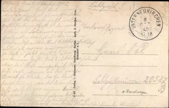 Zustand, siehe Scan, gelaufen, 1940- Inh. Grünauer - ca 14 cm X 9 cm