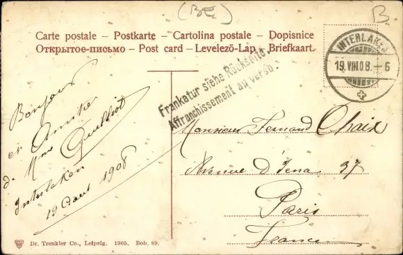 Zustand, siehe Scan, gelaufen, 1908 - ca 14 cm X 9 cm