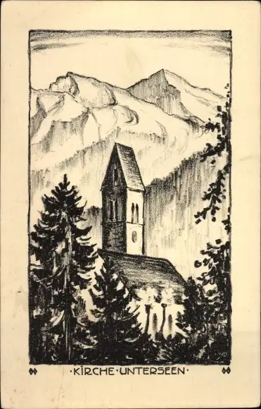 Ak Unterseen Kanton Bern, Kirche, Berge