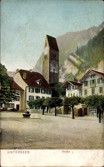 Ak Unterseen Kt. Bern, Kirche, Straße, Häuser