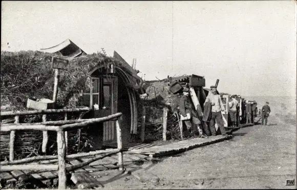 Ak Unterstände an der Westfront, Deutsche Soldaten in Uniformen, I WK