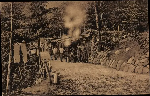 Ak Unterstand direkt hinter der Front, deutsche Soldaten, I WK