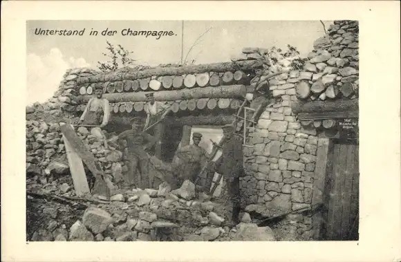 Ak Unterstand im Champagne, Deutsche Soldaten in Uniformen, I. WK