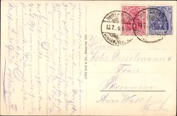 Zustand, siehe Scan, gelaufen, 1920 - ca 14 cm X 9 cm