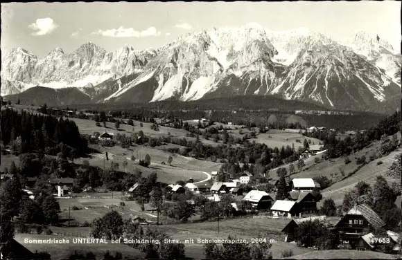 Ak Untertal Schladming Steiermark, Gesamtansicht mit Scheichenspitze