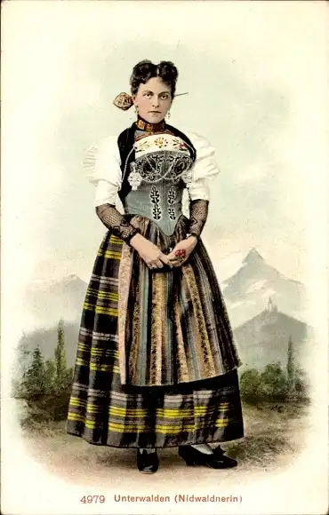 Ak Unterwalden Schweiz, Nidwaldnerin in Tracht, Schweizerin
