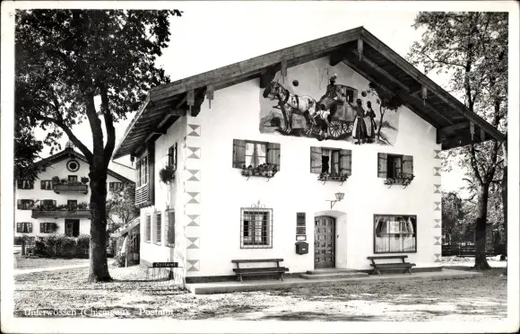 Ak Unterwössen im Kreis Traunstein Oberbayern, Postamt, Wandbild