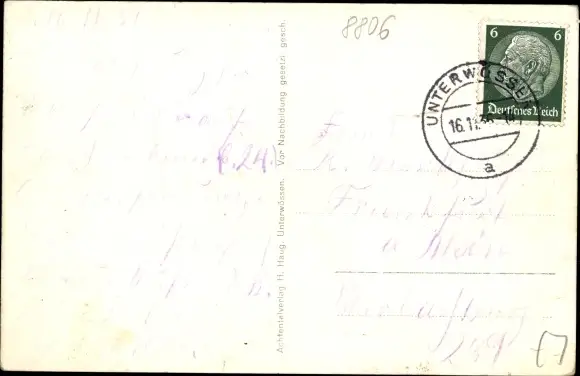 gelaufen 1936, Knickspur, fleckig, sonst guter Zustand