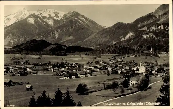 Ak Unterwössen in Oberbayern, Panorama, Kirche, Geigelstein